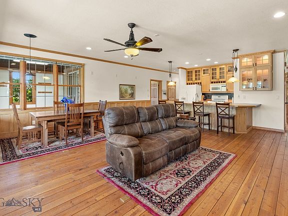 Come watch this amazingly landscaped yard bloom!! Located in the delightful farming community of Churchill, MT and mere 20 minutes from Bozeman this custom built home on a 1/2 acre custom landscaped lot offers both convenience and comfort. Boasting three ensuite bedrooms—two on the main level and one upstairs—this residence epitomizes exceptional craftsmanship and pride of ownership. Outside, discover plentiful outdoor living space on the 12-foot wide covered decks, providing the perfect backdrop for relaxation and entertaining while enjoying beautiful mountain views. The beautifully landscaped yard features impressive large sandstone steps, Gallatin Canyon granite rocks, raised wooden garden beds, and an array of trees, including plum, apple, Canadian cherry, and nine spruce trees, creating an enchanting outdoor oasis. Inside, you’ll be greeted by 9-foot ceilings, elegant oak wainscoting, beautiful wide plank wood floors, and a charming gas freestanding stove. The home also features two spacious living rooms, perfect for family gatherings or quiet retreats. For the creative and contemplative, the home includes both an artist’s room and a reading room, offering dedicated spaces for inspiration and relaxation. The large pantry ensures ample storage for all your culinary needs, while the newer furnace guarantees comfort year-round. Practicality meets convenience with 220 power in the heated garage, a full hook-up for an RV in the back of the home, and an elevator shaft ready for future use.
