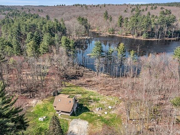 GET AWAY FROM IT ALL... Enjoy Peace, Privacy and Wonderful Scenic Views every day here at 140 Keyes Rd. Located on a low-traffic winding country road and sited on 12 ACRES, this charming Cape design features rustic log-cabin style and offers affordable year-round living with an open floor plan, fireplace, skylights, first floor Main Bedroom, 2nd floor Loft/Bedroom, front porch, open deck in back, heated walkout basement with cobblestone fireplace in Family Rm and Bonus Rm/3rd BR, large open lawn area great for pets and gatherings, your own private waterfront just steps from your back door and so much more to please the outdoor enthusiast plus, amazing bird watching, stargazing and wildlife sightings. A Nature Lover's Dream yet only minutes to major commuter routes, shopping and entertainment. 5.4 Miles to Route 3. Needs some TLC. Property may not qualify for all financing options. Being sold "as is". Rare Opportunity!