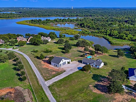 Modern Lakefront Living on Lake Nocona – Main Residence , Guest House with Shop & Pool on 2.65 Acres. Enjoy the perfect blend of luxury, comfort, and income potential with this stunning waterfront property on Lake Nocona! Built in 2021, this beautiful 3-bedroom, 2-bathroom 1530 sq ft home sits on 2.65 acres and offers everything you need for full-time living or a weekend getaway. Inside, you'll find a spacious open layout featuring a wood-burning fireplace, a stylish kitchen with leathered granite countertops, and a garage for added convenience. The primary suite includes a modern walk-in shower, while the guest bathroom boasts a relaxing soaker tub. Step outside to your private lakeside oasis, complete with a cabana, above ground pool, and plenty of space to entertain or unwind. Need extra room for visitors or rental income? The fully furnished 2-bedroom, 1-bath 1000 square foot guest house built in 2022 is ideal for guests or Airbnb income.
