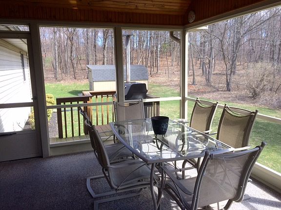 Contemporary flair enhances this beautiful Town of Newburgh Custom Ranch! Pride of ownership is evident in this home, situated on 1.3 acres, designed with generous space and flexibility for your furnishings and lifestyle. Offering over 2200 square feet with open concept living, wonderful Kitchen with custom cabinetry 9 Ft. island with granite, soaring cathedral ceiling in Living Room with sliders to screen porch great outdoor living offering privacy or perfect for the entertainer, speakers indoors and out, split Bedroom floor plan with Master Suite with door to deck, Master Bath with double sinks and vanity, cathedral ceilings and sunburst window, all 3 Bedrooms offer walk in closets, plus den/ office, Andersen windows, conveniently located on main floor Laundry Room and spacious 2 car garage. Nice country location but close proximity for the commuter - I84, Newburgh Beacon Bridge and Metro North train. Perfect home for the buyer looking for one level living!