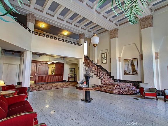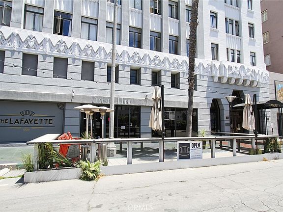 This 1,111 sq. ft. condo (Top floor, corner unit) is one of the largest units in the historic Lafayette. It originally was a 2 bedroom condo but the 2 bedrooms were reconfigured into a LARGE 325 sq. ft.one bedroom unit which features crown molding, recessed lighting, city/ocean views, walk in closet and sitting area. The kitchen includes updated kitchen cabinets, self closing drawers, wine rack, non-capped steel appliances, including a free standing Jensen range with downdraft vent, and LG dishwasher. The kitchen opens to a spacious family room with a custom built entertainment center, custom built dry bar with an under counter wine cooler. The primary bathroom with wainscot walls, has a newer vanity, and plumbing features. The condo is located in the Campbell Building, one of the three buildings that comprise the Lafayette complex. The walk score from the building is 98 which assures you have a short walk to The Pike, Pine Avenue for dining, shopping, Performing Arts Center, museums, marina, ocean and the METRO to downtown LA and points beyond. Amenities in the complex include the largest free fitness center in Long Beach (You will be able to cancel your gym membership), a fully equipped game room, a solarium on the 11th floor of the Campbell building where you will be able to entertain your family and friends, an open deck on the 7th floor, a library with free WI-FI, outside barbeque and garden area and various venues throughout the complex to relax and unwind. The complex is pet friendly, has storage lockers, subject to availability (more are being built) and monthly parking is available starting at $70 in various parking lots within two blocks of the Lafayette. HOA dues are only $550 a month or $.49 per square foot which is substantially lower than any of the Ocean Blvd high rise buildings that have been built in the past 50 years. This is a great unit in a well maintained building with strong financial reserves. The complex is both FHA and VA approved.
