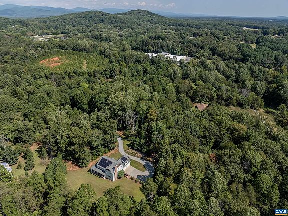 At the end of a meandering drive that winds through woods before breaking out in the open, is a remarkably well constructed, thoughtfully designed & detailed 4 bed/4.5 bath craftsman farmhouse in the heart of Ivy. The 4+ acre parcel provides expansive, level lawns, seasonal mountain views from covered blue stone porches, a creek & woods to explore. Gourmet kitchen, butler's pantry & service area feature counters made of walnut harvested on site and hardwood flooring throughout the home stuns. You'll love the 2 wood-burning fireplaces in living room and primary bedroom, wrap-around porch off kitchen/family room. Each bedroom features a private ensuite bathroom and the home features a huge finished basement w/ full bath, wine cave, lots of conditioned storage, and rough-ins for sauna and kitchenette. Nature lovers will love the abundant gardens with fig trees, grapevines, apiary, and more! Solar panels and geothermal heat pump make this home so energy efficient. Under 10 mins to Charlottesville & moments to charming Ivy amenities.