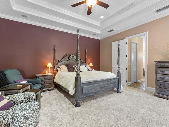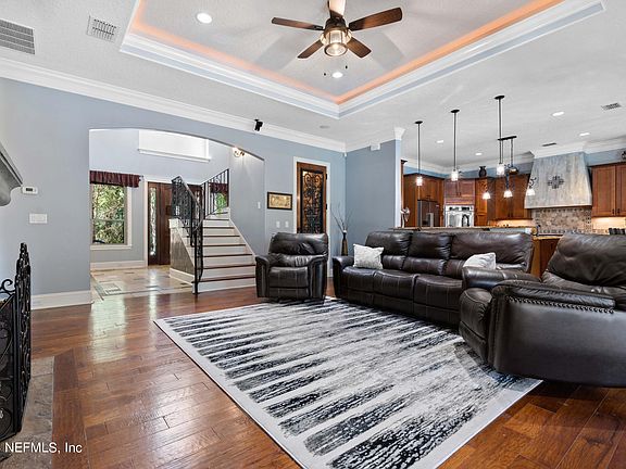 Experience the epitome of comfort and quality in the heart of FLEMING ISLAND in a POOL home that has everything your dreaming of. Conveniently tucked back on a private paved road close to the River yet only 1 mile from shops.Elegantly appointed with every detail considered this 3840 sq ft custom designed home will impress with 4 bedrooms, 5 baths, 4 flex spaces & 5+ GARAGES as well as RV/BOAT STORAGE. The kitchen is a Chef's dream and the Owners Ensuite leaves nothing overlooked. A large FENCED YARD offers the privacy & space you desire. Cool evenings will find you gathered around the OUTDOOR FIREPLACE with a glass of wine from your climate controlled WINE ROOM. Relax in the sunshine in your 34'x17' SALTWATER POOL & SPA while you prepare your al fresco dinner using the SUMMER KITCHEN within your expansive SCREENED LANAI. Later you can step upstairs to the home theater for a great movie. This one has it all plus NO HOA/CDD-Award winning Clay Schools. Exquisite floor plan & finishes.
