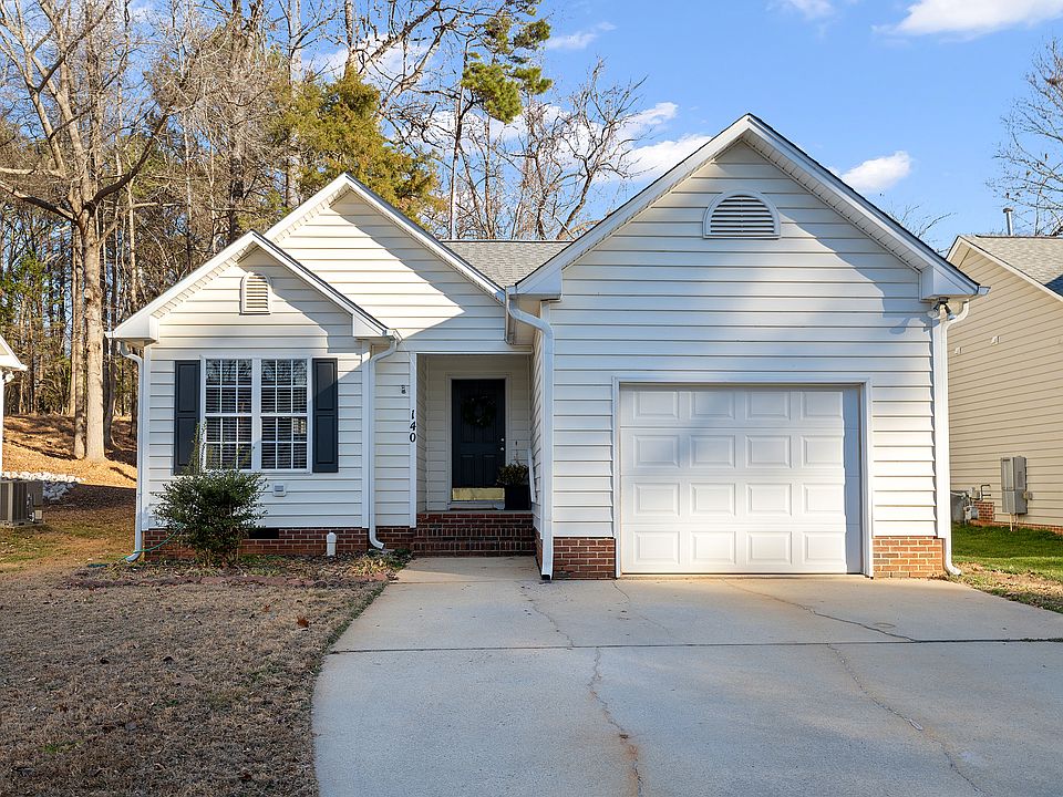 This 3-bedroom, 2-bath single-family home at 140 Melksham Road is located on a quiet residential street in a well-established Wake Forest neighborhood.