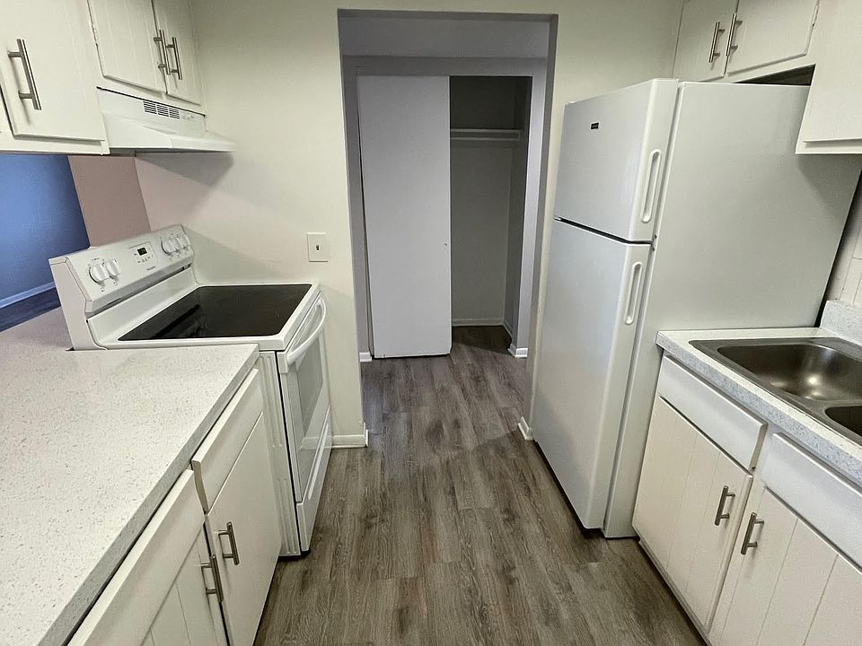 Plank floors throughout updated cabinets and counters. The cabinets are white shaker style and the counters are different then in the picture. The unit is available and ready for viewing