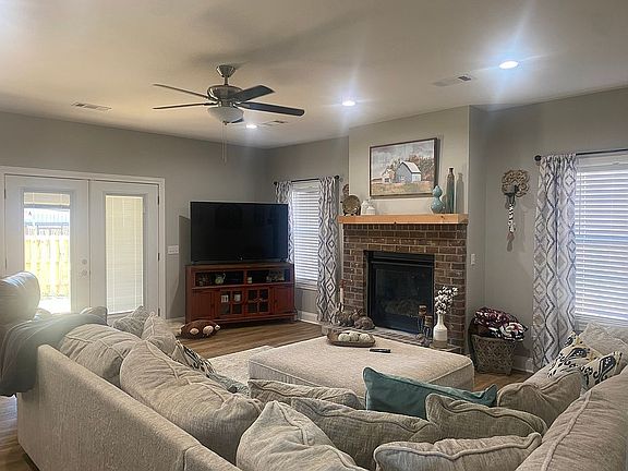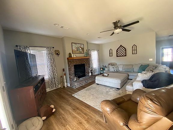 Open living area with split bedrooms. 3 beds 2 baths, laundry room, covered back patio, fenced back yard, 2 car garage, pantry, lots of storage, granite countertops, tile bathrooms, wood laminate throughout. Jetted tub with separate tile shower in master bath. In a perfect location in the heart of pontotoc, quiet neighborhood, great neighbors. Pontotoc City School district. Only 1 owner.