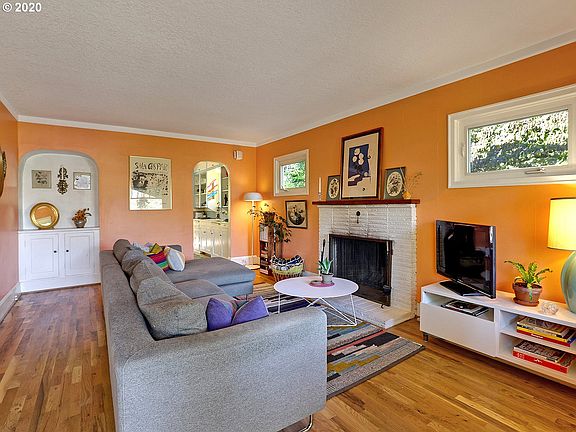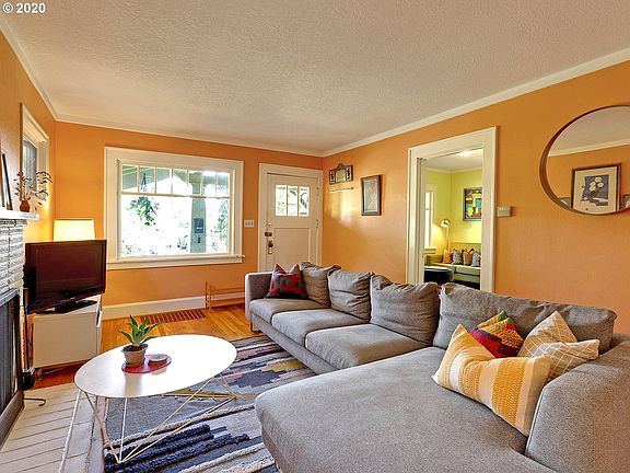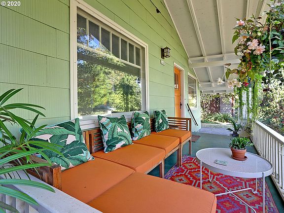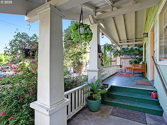 Super sweet tropical PDX bungalow! Tons of character & inviting charm throughout. Living room w/wood burning fireplace & period kitchen w/open shelves & sunny dining nook. Two main floor bedrooms w/shared bath. Basement w/bonus space for hobbies or guests. Amazing covered front porch & lushly landscaped private backyard for outdoor fun! Detached oversized garage perfect for storage, shop or future ADU. Convenient Piedmont location near parks, max, Dekum Triangle & Vancouver/Williams bikeway! [Home Energy Score = 6. HES Report at https://rpt.greenbuildingregistry.com/hes/OR10186725]