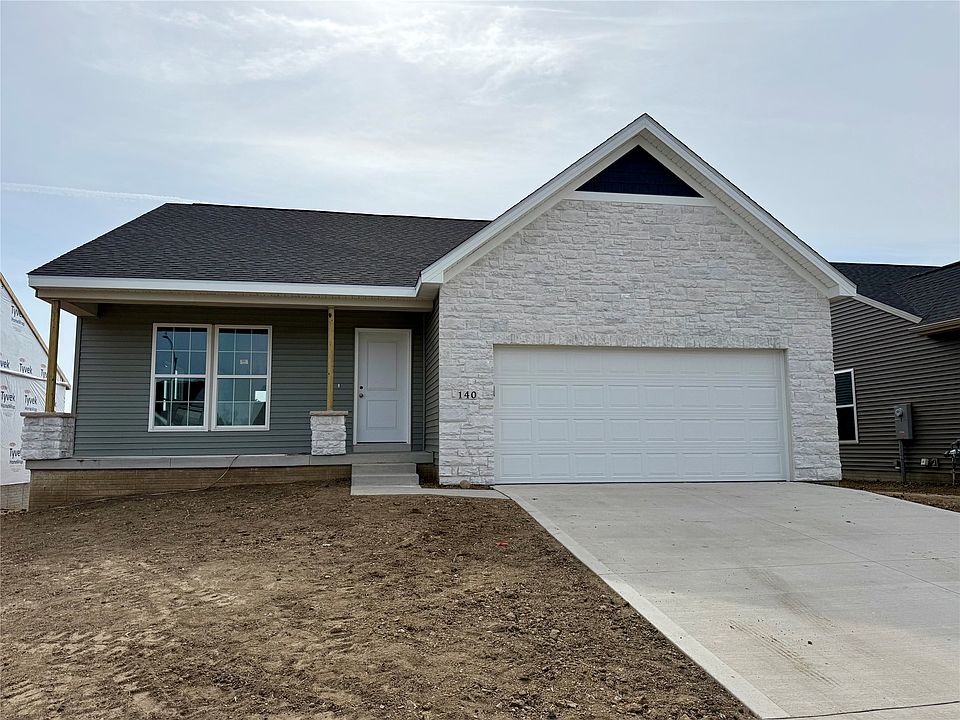 Curb appeal with stone details and the cutest front porch make this one stand out! The Tremont plan by Gentry Homes is a thoughtfully designed ranch home offering 3 bedrooms, 2 bathrooms, a main-floor laundry and a 2-car garage! Its open layout creates a spacious great room that flows seamlessly into the sunlit dining area and kitchen, perfect for both relaxing and entertaining. The owner's suite serves as a private retreat, featuring a luxurious bathroom and an expansive walk-in closet. Enjoy upcoming fall evenings on your oversized deck out back with unobstructed views- no neighbors to the back! Lower level is ready to finish and expand your living space with an optional fourth bedroom or rec room! This one is complete and move-in ready!
