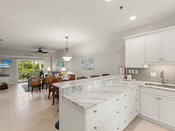 Every corner of the living area evokes a sense of tropical tranquility, with furnishings that invite relaxation and decor that pays homage to the timeless charm of old Marco Island. Picture yourself unwinding in this cozy oasis, your mind at ease as natural light dances through thoughtfully designed spaces.
