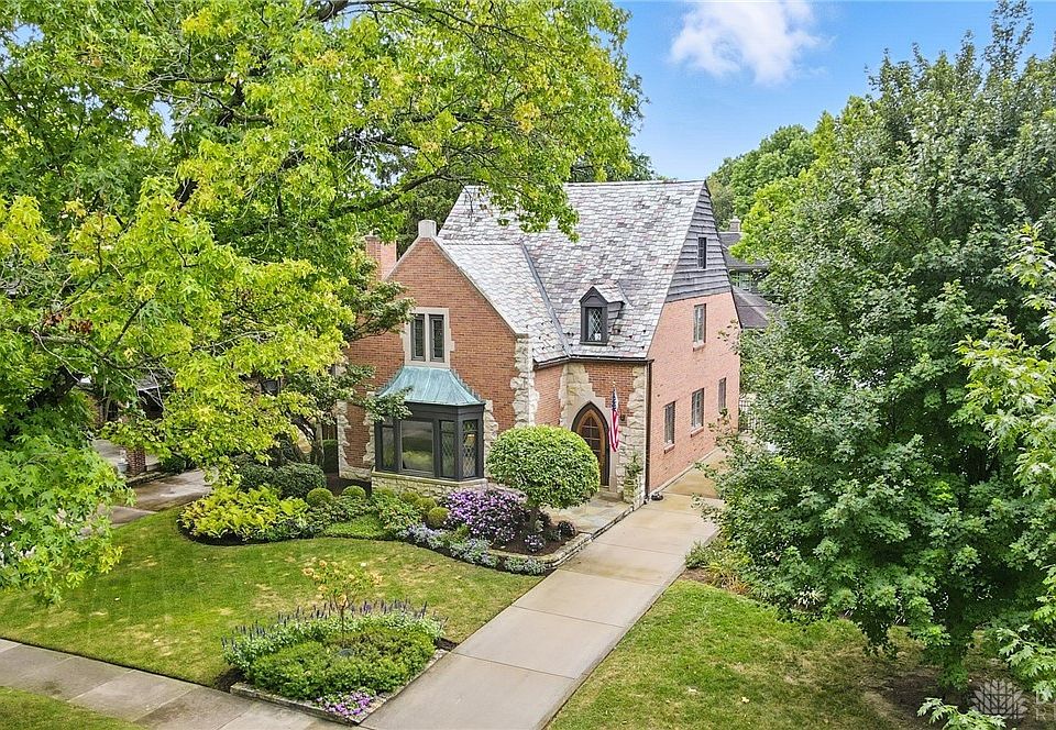 This charming custom home has 2784 sq ft living area plus so many gracious features. Stunning brick exterior elevation with stone accents and slate roof. That is why this home was featured in Dayton Architecture on Instagram. The home received the Oakwood Beautification Award. Beautiful landscaping featuring large Japanese Maple tree. Front yard has an irrigation system. The quality and craftmanship is on display from the moment you approach the custom wood front door. The attractive entry and stairway feature fluted plaster walls. Spacious living room with large bay window, built-in bookshelves, custom crown molding and trim, gas fireplace and walnut peg wood floors. Dining rm has 2 original built-in China cabinets. Remodeled kitchen with custom cabinets. Main level family room is great for watching TV. 1st floor study/office with pocket door. 22' covered patio. Spacious primary bedroom offers its own study/office. Stairway to 26x15 floored 3rd floor. Pella replacement windows. New water softener being installed November 2025. 2nd floor shower new 2024. Water heater approx. 7 yrs old. Furnace approx. 13 yrs old. Smart House. Laundry chute. Workbench stays. Some of the reasons people select Oakwood as their residence: Excellent public schools,, historic charm and architecture, close knit community, proximity to downtown Dayton, strong city services, green spaces & recreation. Shafor Park is Oakwood's largest recreation complex & includes 3.3 acres of playground, ball-field, basketball court, six tennis courts & an outdoor pool. A special feature of Shafor Park includes a fountain where kids can play on hot summer days. The shelter house can be reserved for family & group picnics. Activities include summer day camp, tennis lessons, Ice Cream Social and Family Fall Festival. Next to the pool and Shafor Park is the Oakwood Community Center which offers aerobics & ballet classes. The Oakwood dog park is only short distance away .Fireplaces & chimneys are not warranted.