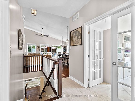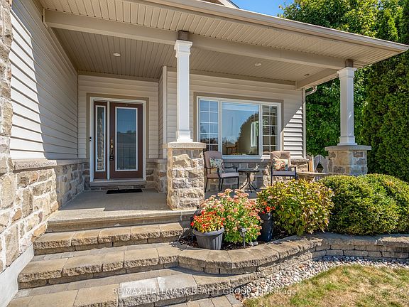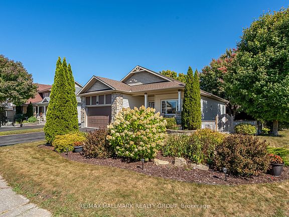 Spectacular executive bungalow offering two levels of finished living space, a walk-out basement, 2+1 bedrooms plus main floor den/office, and 3 full bathrooms! Perfectly positioned on a landscaped corner lot, the exterior boasts manicured lawns, lush perennial gardens, full irrigation system, monumental stone retaining wall, and extensive interlock and hardscaping. Inside, the open-concept design is further highlighted by soaring cathedral ceilings and tons of windows. The living room features a custom built-in entertainment unit with cabinetry and shelving, while the dining area provides ample space for formal dining. At the heart of the home, the chef-inspired kitchen features granite countertops, white cabinetry with crowns, tiled backsplash, centre island with second sink, pantry closet, and includes the stainless steel appliances. The primary bedroom includes a walk-in closet and luxurious 4-piece ensuite bath. A second bedroom, 4-piece main bath, and versatile den/office complete the main level. The fully finished walk-out basement extends the living space with rec room, additional bedroom, full 4-piece bath, utility room, and storage room. Recent updates include furnace and heat pump/AC (2024), Lighting, Landscaping. Located in one of Carleton Places sought-after neighbourhoods, very close to parks and the famous Mississippi Riverwalk Trail, schools, shopping, and everyday conveniences. Other heat source is a heat pump.
