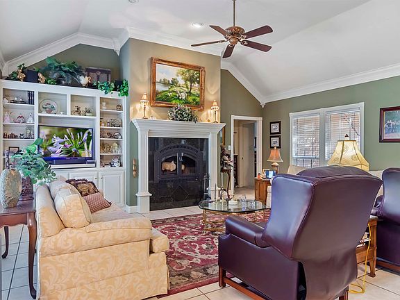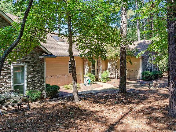 Perfect weekend or retirement home nestled in unique resort community on quiet cul-de-sac. This well-kept 3 bedroom with study (one-owner) home was custom built with tons of upgrades and is move-in ready. Open plan with vaulted ceiling in living room. Kitchen with skylight has granite counters, lots of cabinets & drawers, breakfast bar-peninsula, pot & pan drawers & walk-in pantry. Spacious open breakfast nook. Dining with walls of windows for natural lighting overlooks the outdoors & can also be a sunroom. Large bedrooms & lots of storage with spacious closets, storage cabinets in bathroom & laundry, and built-ins in living room and study. Primary suite has oversized shower, jetted tub and walk-in closet. Custom millwork trim around all windows & doors. Crown molding throughout home. 2 car over-sized garage plus golf cart garage with storage cabinets. Deck in back with custom built-in benches. Lush garden area is fenced and has sprinklers…which can be extended to rest of lot. Beautifully wooded community with multiple lakes, boating, kayaking, fishing, golf, tennis, pickle ball, community pools, 24-hour fitness facility, on-site restaurant, putt-putt, basketball, sand volleyball, disc golf, dog park, nature trails and gun range all within a gated community with 24-7 security only 2 hours from Dallas area. Private airport too.