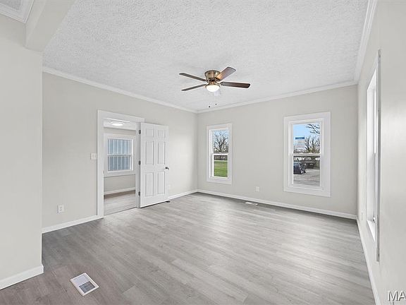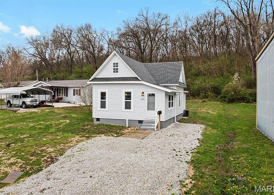 Seeking serenity without sacrificing convenience? Discover this charming 1.5-story home nestled in the heart of Kampsville—offering the perfect blend of peaceful living and small-town charm. Step inside to find fresh updates throughout, including new flooring, modern lighting, and a freshly painted interior. The main level features a welcoming living room, formal dining area, a beautifully updated kitchen, two bedrooms, a full bathroom, and a rear mudroom with laundry for added convenience. The kitchen is a standout with its white cabinetry, sleek granite countertops, classic white subway tile backsplash, and stainless steel appliances—designed for both style and function. Upstairs, you'll find a spacious bonus room with endless potential—ideal for a home office, den, guest room, or creative space. Whether you're looking for a peaceful retreat or a full-time residence, this unique home is a rare find. Don’t miss your chance to make it yours—schedule a showing today! Call your favorite realtor today for your own private viewing. This is a Fannie Mae Property. Before making an offer Buyer and/or buyer agent should verify all MLS data.