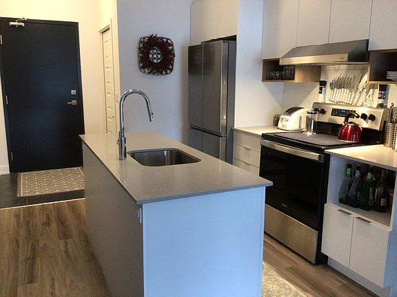 1 bedroom + den. Includes 5 high end appliances, engineer and ceramic floors. Soaker tub + glassed in shower with rain shower head and separate shower wand. AC. Underground heated garage. Rooftop terrace, gym. Minutes from walking and cross country ski trails and walking distance to Petrie island. Lease transfer at set guaranteed rate of $1,835/month for 18 months. Heat/Hydro not included. No smoking.