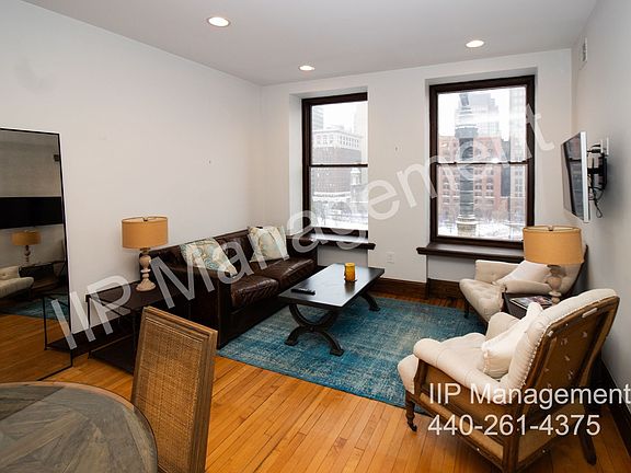 Furnished Luxury Condominium with Stunning Views of Public Square Located in the historic Park Building, this exquisite two-bedroom, two-bath, 1,128 sq. ft. luxury condo offers unparalleled living in the heart of Cleveland. Situated across Ontario Street from Tower City and adjacent to The May, this unit provides both convenience and elegance. Steps away from Public Square, Progressive Field, Playhouse Square, Rocket Mortgage Arena, E. 4th St., the Flats, and the Cleveland Public Library. -- The property comes fully furnished. This beautiful unit has a back balcony, solid wood trim and is built with quality condominium (not apartment) fit and finish.