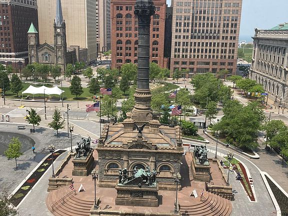 FURNISHED Luxury Condominium overlooking Public Square located in the historic Park Building across Ontario Street from Tower City and next to The May. This two-bedroom, two bath 1128 sq. condo includes underground reserved parking, a free Planet Fitness gym membership, walk-in closet, abundant storage, king-sized individual electric adjustable bed, two extra-long twin beds in second bedroom, a furnished living room with a gas fireplace and a completely outfitted kitchen with all the necessary cutlery, cookware and appliances. The renter only needs to supply bedding and towels. This beautiful unit has a back balcony, solid wood trim and is built with quality condominium (not apartment) fit and finish. Ten-foot ceilings and huge picture windows gives you a panoramic view of Public Square. Literally minutes-walk to Progressive field, Playhouse Square, Rocket Mortgage Arena, E. 4th St., the Flats, Cleveland Public Library, Warehouse District, Health Line, Casino and bars and restaurants too numerous to count. Be a part of the dynamic downtown Cleveland scene right outside your front door. Rent includes gas, water, underground parking and HOA fees. Tenant only pays for electric and internet service. No pets please.