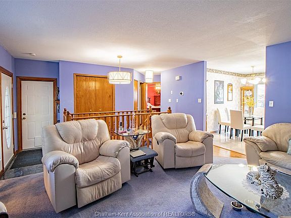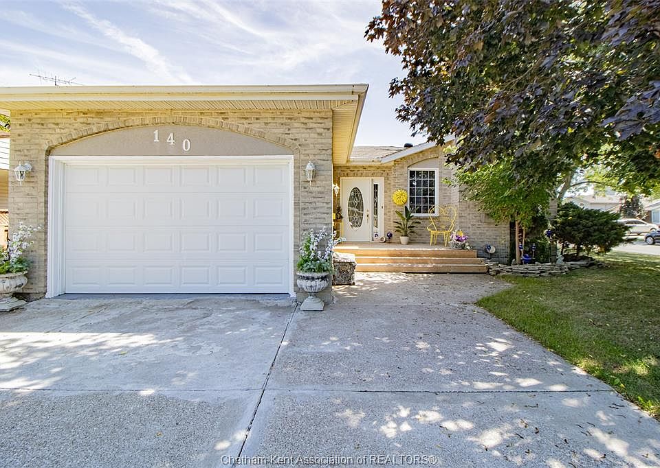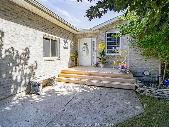 Welcome to this charming 31 year old all brick home, situated on a desirable corner lot in a great Tilbury neighbourhood. The home features 2+1 bedrooms, 2 bathrooms and a garage! The open concept main floor features your living room with a gas fireplace, sizeable eat in kitchen with sliding doors leading to the back patio, 2 bedrooms and a large 4pc bathroom with a nice sized linen closet and a skylight. The bedrooms, bathroom and entrance all have updated flooring. Downstairs is a spacious family/rec room with a secondary gas fireplace, a 3pc bath, a potential additional bedroom, and a large laundry room. Lots of storage throughout the home! Sitting on a corner lot, there are 2 concrete driveways (one in the front and one in the rear/side). The back patio features a retractable awning and a good sized deck to sit and enjoy. With the option to purchase fully furnished, this home is truly move in ready - just unpack and start enjoying!