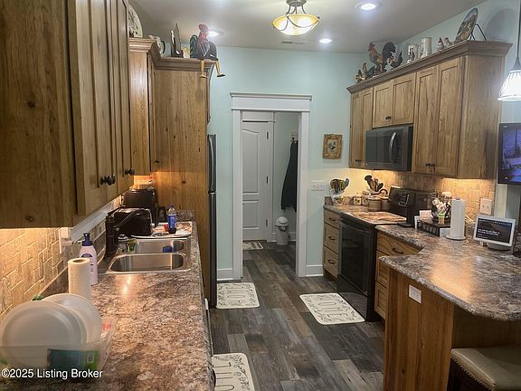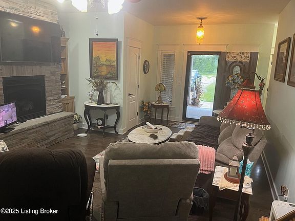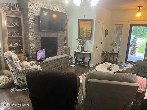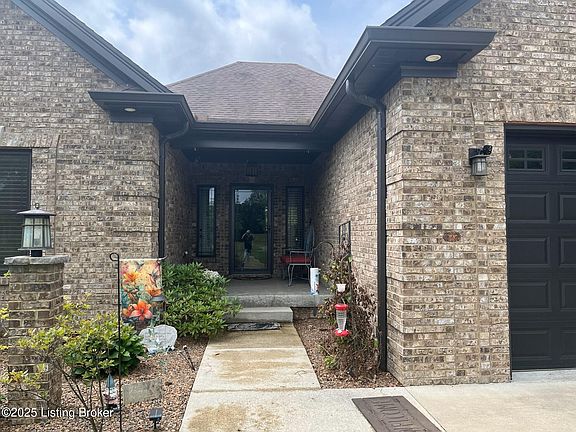 Brick home situated on 2.35 acres offers privacy, scenic views, and a beautifully landscaped yard. Inside, you'll find 9-foot ceilings, recessed lighting, and a full line of kitchen and laundry appliances. The living room features a cozy gas fireplace, perfect for relaxing evenings. This two-bedroom, two-bath home includes a spacious primary suite with his and her closets, dual vanities, and a walk-in tiled shower. A one-car attached garage includes nice cabinetry that will remain. Enjoy outdoor living with a covered deck that leads to a charming patio. An outbuilding provides additional storage.