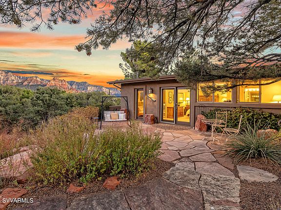 Perched on one of Uptown Sedona's premier lots, this home offers an unparalleled vantage point to experience the majestic Red Rocks in all their glory. From the elevated, expansive front patio, the panoramic views stretch as far as the eye can see, capturing the famed Sedona sunsets that turn the sky into a living canvas. A main home of 2 bdrms & 2 bths and detached CASITA offering a LR/ bdrm/ bth / office offers flexibility - making it ideal for visitors or as a creative retreat. Privacy meets grandeur, a rare find in the heart of one of Arizona's most sought-after locales.