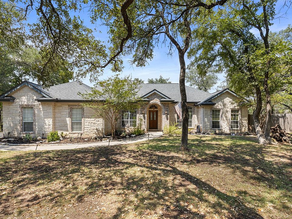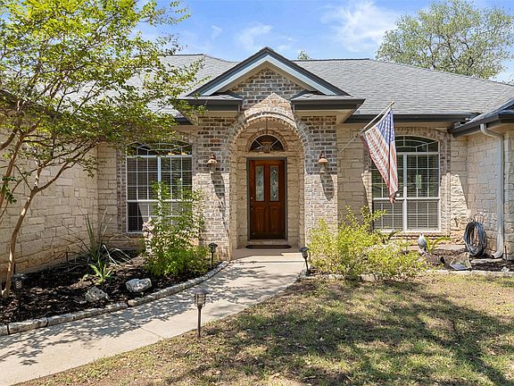 Welcome to your very own slice of heaven on 1.14 acres with several Oak trees! This Jimmy Jacobs Custom built home is nestled in the back of a cul-de-sac and offers the perfect balance of elegance and modern convenience. Inside offers an open floorplan with crown molding, soaring 10-foot ceilings, hardwood and ceramic tile floors plus ample windows creating a light, airy atmosphere, highlighted by a corner wood-burning stone fireplace. Recent updates include a new A/C in the house and bonus room over the garage (2025), roof and gutters (June 2020), and fresh interior and exterior paint (June 2020)—ensuring the home feels as new as the day it was completed. The chef's kitchen boasts quartz countertops, stainless steel appliances, tiled backsplash, and 48-inch oak cabinets, making it an ideal space for both cooking and entertaining. Enjoy peace, quiet and abundance of nature. The master suite is a true retreat, featuring a separate garden tub and shower, double sinks and dual walk-in closets. The spacious three bedrooms have amble closet space and are nestled between the family room and master retreat. Step outside to enjoy the expansive flagstone patio, with both covered and open areas perfect for relaxing by the outdoor wood-burning stone fireplace or cooking up a meal on the BBQ grill with a prep station. The private 1.14-acre lot offers plenty of space for a pool, playscape, sports court and more. The 2-car attached garage and the oversized 2-car detached garage with an air-conditioned bonus room above featuring a private balcony provide endless possibilities—whether for extra storage, a workshop, or a home office. This home is the epitome of comfort, style, and convenience, offering a lifestyle of both relaxation and entertainment all within 10 minutes of restaurants, parks, shopping, healthcare, Lake Georgetown, the new HEB grocery store and shopping retail complex, plus easy access to IH-35.