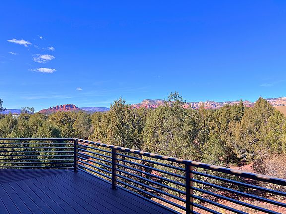 WEST SEDONA MOUNTAIN VIEWS Custom built 2300 sq. ft. home on a natural .89-acre lot is offered for rent in the peaceful Rimstone subdivision. Built in 2020, this 3 bedroom, 2 bathroom home is filled with luxury features including 10 ft. ceilings, floor to ceiling custom fireplace with Napoleon insert, custom cabinetry, ceramic tile floors and granite and Corian countertops. The open floor plan brings in outdoor beauty, with floor to ceiling windows offering views of Thunder Mountain and the Cockscomb. Double-wide sliding glass doors lead to an additional 1200 sq. ft. of outdoor deck space, including a gas firepit. Bar seating at the kitchen island is wonderful for casual visiting while Hubbardton Forge fixtures give the dining area an elegant touch. Appliances are all in stainless steel. The double oven and French door refrigerator make entertaining easy for a few or for many. The master bathroom has a step-in spa tub with recirculating heater. Two large walk-in closets make storage convenient. A 300 gallon fire suppression system and wired-in smoke/CO2 detectors will keep you and loved ones protected. The shining epoxy floor in the attached 2-car garage will welcome you home. This home is Energy Star rated and features an ERV system to exchange indoor and outdoor air, reducing energy usage and keeping air in the house fresh. Northern Arizona Medical Center and 24-hour Emergency Room is less than 5 minutes away. Renter is responsible for water, electric and gas utilities, as well as refuse/recycling services. Renter will maintain the landscaping. Homeowners Association CC&Rs will be provided and must be adhered to. No subletting or Air B&B rental is permitted. Up to 3 pets are allowed.