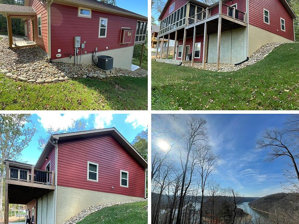 This gorgeous lake cottage has an awesome view of Dale Hollow Lake year round. The home offers 2 bedrooms/2.5 baths and a fully finished basement. The main level has one master bedroom and bath, half bath and laundry. The kitchen and living room area are open area that boast 15 ft. pine cathedral ceilings. White cabinets in kitchen area, stainless steel appliances. Living room has a stone fireplace with custom made black walnut mantel. Engineered hardware floors on main level. All walls on inside of home are insulated. Basement offers den area that leads to patio area that also has lake view. One bedroom downstairs, full bath and one large room that is being used as bedroom but could be used for several things such as media room or game room. There is a mechanical room with tankless water heater. All ceilings in basement are 11.5 high with all tile flooring. Some furnishings go with the purchase. Buyer to verify all information and measurments in order to make an informed offer.