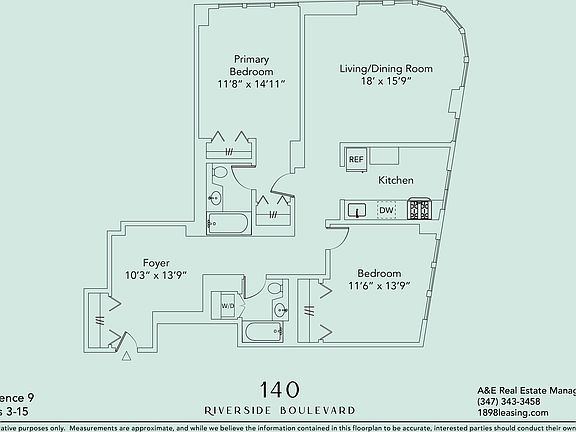 *This stunning water facing 2 Bed/2 Bath has bay shaped rounded windows that drenches the unit with sunlight, and boasts the buildings largest kitchen. The unit also has a W/D in unit and has been gut renovated. Located in the heart of Lincoln Square's iconic 140 Riverside Blvd."