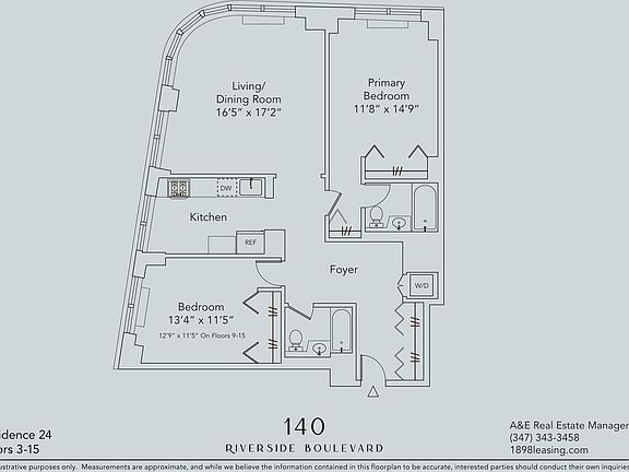This stunning South/Water facing SUN DRENCHED 2 Bed/2 Bath with W/D in unit is located in the heart of Lincoln Square's iconic 140 Riverside Blvd.