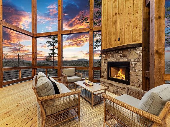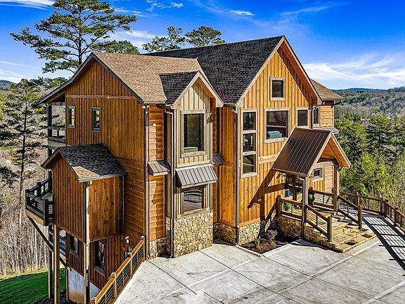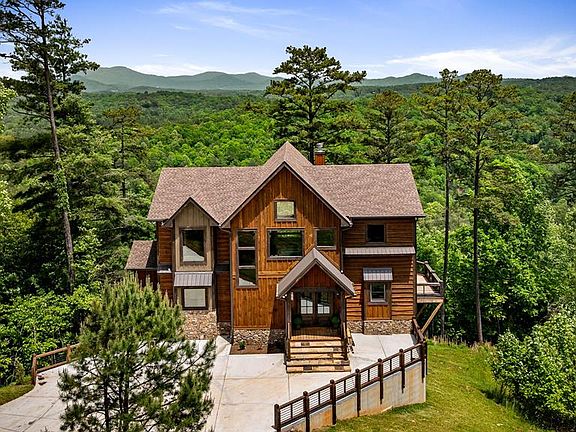 Exclusive Builder Closeout Offering Instant Equity– Luxury Mountain Retreat with Long-Range Mountain and Toccoa River Views! Don't miss this rare seller-exclusive opportunity to own the only new-construction, fully furnished mountain retreat at this price, offering spectacular long-range mountain views and serene Toccoa River vistas with river access. This exclusive builder inventory closeout is an incredible chance for investors and buyers seeking the ultimate Blue Ridge escape, with prime opportunity for delivering lucrative rental income. Located in a prestigious gated community just 7 miles from downtown Blue Ridge, this stunning 5-bedroom, 5.5-bath home blends modern rustic elegance with strong short-term rental potential. Inside, you'll find soaring cathedral ceilings, rich wood accents, upscale lighting, and a dramatic stone fireplace. The chef's kitchen features stainless appliances, a large island, and an open layout perfect for entertaining. The main-level primary suite includes a cozy fireplace and spa-like bath with a freestanding soaking tub and walk-in shower. Upstairs, two ensuite bedrooms boast private decks with breathtaking mountain and river views, ideal for guests or rental income. A versatile loft offers space for an office, gym, or extra sleeping area. The walkout terrace level is perfect for gatherings, offering expansive living space, a second stone fireplace, wet bar, wine room, and multiple decks to enjoy the crisp mountain air. Outdoors, there's plenty of space to design your dream mountain oasis while being steps away from the river for fishing, kayaking, or simply relaxing. Beyond the property, Blue Ridge offers charming downtown boutique shopping, art galleries, top-rated dining, craft breweries, wineries, and adventures like hiking, horseback riding, tubing the Toccoa River, and golfing at Old Toccoa Farm. This is your chance to own a turnkey retreat in one of Blue Ridge's most desirable communities. Schedule your private tour today!