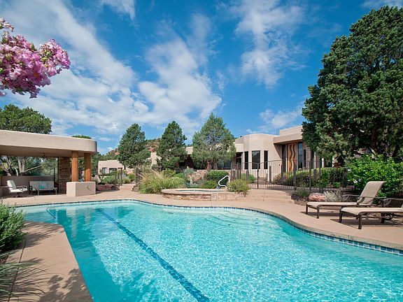 This splendid, secluded family compound with marvelous views & complete privacy has it all. Passing through the private gate, you leave the madding crowd behind & enter a sanctuary of serenity, natural beauty, & luxurious comfort. Soothe your soul with a stroll through the one acre property with its lavish landscaping, water features, meditation/yoga gazebo, pool pavilion, and, above all, Nature's brilliant red rock panoply. Cathedral, Bell, & Courthouse Rocks are just the beginning of the panoramic display.