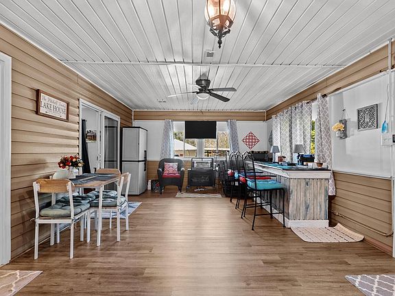 Very spacious camper with build over in 2022, Huge great room, 1st floor master with king size bed, Awesome bathroom with double vanity, walk in closet, walk in shower. Second bedroom with its own bath/walk i shower and its own outside entry. Kitchen is eat in with plenty of seating, fireplace, island, and is really adorable. You will be in awe when you enter this home with so many nice features. There is even an additional lot, Wanna Dr. with cook shack/screen porch, and hall bath. separate driveway on Wanna Dr. Carport to store your golf cart, grill etc. Keeping them out of the weather. This home comes partially furnished, move right in!!! Great area of the Lake with great neighbors. Perfectly maintained, you will love this home.