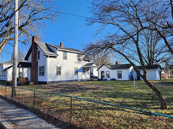 Charming South Main St setting. Many recent updates to this home....new septic system, new furnace, new electrical line to the house, ceilings just painted. This 3 bedroom 1 full and 2 half baths home awaits you. Large front living room with a fireplace, formal dining room, eat in kitchen and a half bath on the first floor. Second floor is 3 bedrooms, office and a full bathroom. There is a shower and sink in the basement as well as a wood stove. Outbuildings....look at the pictures.....garage/activity room with a wood stove and screened porch attached, another 2 car garage with a full second floor and another room attached, potting shed, old chicken coop and more. Plantings......we have crab apple and crab pear, peach tree, blueberry bushes, rhubarb patch, mulberry tree and concord grapes. Much more than you would imagine driving by.