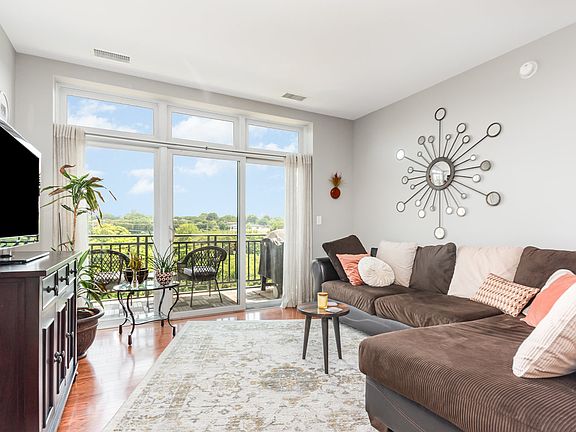 Riverfront Condo in the Heart of Downtown Aurora. Discover urban living at its finest in this meticulously maintained 2-bedroom, 2-bathroom condo, offering over 1,200 square feet of sophisticated space along the scenic Fox River in Aurora, Illinois. As the original owners, the sellers have lovingly cared for this pristine unit, ensuring it shines with timeless appeal. Step inside to find gleaming hardwood floors that flow throughout the open-concept living area, creating a warm and inviting atmosphere. The modern kitchen boasts sleek stainless steel appliances, perfect for culinary enthusiasts, while the convenience of in-unit laundry adds everyday ease. The private balcony offers stunning river views, providing a serene retreat to unwind or entertain while overlooking the tranquil Fox River. This well-appointed condo is located in a premier building featuring an elevator, heated parking garage, and additional storage for ultimate convenience. Association dues thoughtfully include heat, cooking gas, and water, simplifying your lifestyle. Perfectly situated in the heart of downtown Aurora, this home places you within walking distance of vibrant local attractions, including the Aurora Public Library, eclectic restaurants, lively bars, the renowned Paramount Theatre, the excitement of the nearby casino, and the convenience of the Metra train station. Everything downtown Aurora has to offer is at your doorstep. Don't miss this rare opportunity to own a move-in-ready riverfront gem in an unbeatable location. Schedule your private tour today!