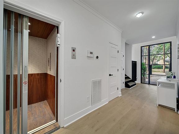 Prime location, NO rear neighbors, & close to all The Woodlands has to offer. Stunning contemporary designed split-level home is a must-see w/ NEW wood floors in common areas & bedrooms, new lighting, FRESH interior/exterior paint, & electrical panel (can charge electrical car). With the convenience of an elevator, you can take to each level. The entrance brings lots of natural light w/ floor to ceiling windows. On this level you will find a spacious living area, secondaries, & utility. Entertain in your QUARTZ kitchen w/ stainless steel electric range, oven, showcase cabinets, lots of counter space, & walk in pantry. Saving the best for last on top level is the primary retreat w/ private balcony, soaking tub, oversized rain shower w/ bench seat, & his & her walk-in closets along w/ a home office space. The basement space (can be a flex space, GAMEROOM, or man cave) includes a wine cellar. COVERED back patio. ZONED CONROE ISD. Near lots of parks & shopping. Call today & set up a tour.