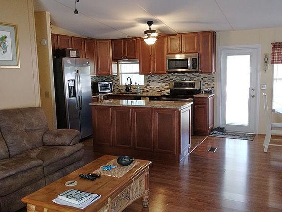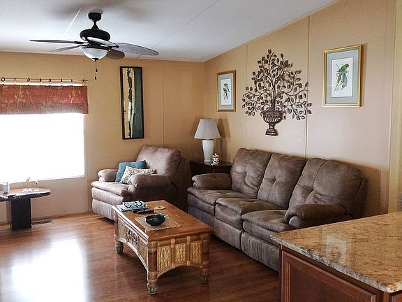 Leisure Village 55+ community. Fully furnished double wide with 2 car carport. Open concept home. Kitchen with high end cabinets, ceramic backsplash, granite countertops and island. Panoramic windowed eating area. Laminate floor in living room/eating area. Ceiling fans in every room. Two sheds - one laundry room/storage and the other fully outfitted workshop (included). Wraparound windows in the Florida room. Clubhouse has free Wi-Fi. Shuffleboard and bocce courts, pool.
