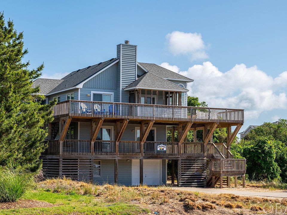 Enjoy the best of Duck with this spacious Schooner Ridge home! The great room is truly GREAT with high ceilings and a feeling of spaciousness. The wrap around decks on this home are fabulously functional and solid! This home is exceptionally clean and well maintained. Your experience on the top floor is all about the light and space that will make you feel light and free on your vacation! The oversized decks on the top wrap around three sides are perfect for enjoying the sun or the stars! The screen porch offers a convenient covered space to enjoy the breeze outside no matter the weather. Relax in the elevated ships watch or anywhere within the large living room. The well appointed kitchen and dining room continue the theme of windows and high ceilings. Rounding out the top floor is an ensuite king bedroom with direct deck access. The midlevel features 3 bedrooms and 2 full bath rooms with tile floors and showers. The decks on this level wrap around on four sides! You can always find sun or shade here and the hot tub on this level is ready to relax you. On the ground level, there is a fifth bedroom and a large utility room with washer/dryer, refrigerator and storage. There is also a single car garage and several other areas of storage for guest toys and lockable closets for owner usage. The garage could be perfect as a game room or additional finished space! This home has been rented by owner only in the summer months. You can see years of positive reviews of “Lazy Duck” in Schooner Ridge on VRBO! Schooner Ridge is located in the center of town, so the Town of Duck Park, restaurants, shops and boutiques, fruit stands and markets, a yoga studio and recreation activities are all within easy walking or biking distance. A short bike ride or walk along quiet, winding streets takes you to the private community beach access and oceanside pool. The recreation center is very close and provides an indoor pool, second outdoor pool, tennis courts and an outstanding fitness center. Hurry...don't let this slip away!