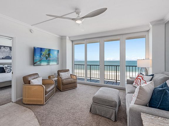 Stunning 17th-floor beachfront residence boasts sweeping views of Marco Island's crescent shaped beach and the sparkling waters of the Gulf. This 2 bedroom, 2 bath residence features an open floor plan, remote controlled window shades, and thoughtful details throughout. The beautiful, coastal interior opens to the large beachfront balcony. This is the perfect place to watch spectacular sunsets and enjoy the gentle island breeze and fresh salt air, all from the comfort of your own home. The updated kitchen boasts granite counters, white cabinetry, GE stainless steel appliances, and a contemporary backsplash. The master suite offers access to the balcony and spa-like ensuite bath with walk-in shower, floor-to-ceiling tile, and modern lighting. The additional guest bedroom also offers access to the balcony. Enjoy the convenience of a dedicated, covered parking space with extra storage. Impact windows and sliders provide extra peace of mind. Admiralty House has many fine amenities including a beachfront pool, beach access, chickee tennis courts, BBQ area, chickee huts, onsite management, social room, and more.