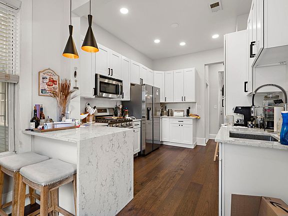 No Broker Fee! Welcome to this 3 bed 2 bath duplex offering approximately 2,000 square feet with a private entrance and parking for 2+ cars! The home is flooded with natural light situated on the south west corner of Shippen St. Featuring central HVAC, 10 foot ceilings, hardwood floors, radiant floor heating, marble bathrooms, Shaker cabinet kitchen with quartz waterfall countertops, stainless steel appliances, two living rooms, in unit washer/dryer, outdoor space in the front and back, parking for multiple cars, ample storage, and more! Only one block to NYC transportation and 2minutes to local parks/restaurants. Owner pays for water. Pets considered on a case by case basis. Landlord pays for water.