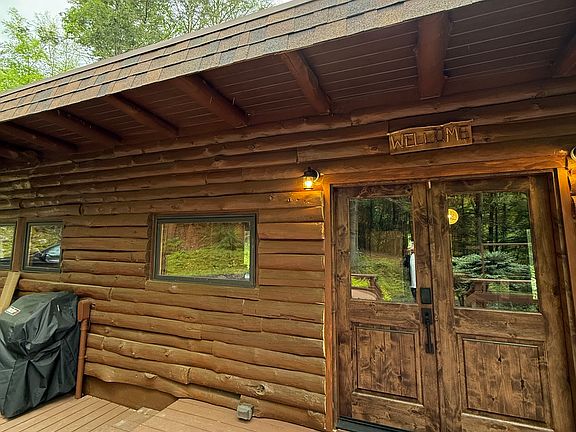 Newly renovated wood Log cabin for rent in the woodland valley of Catskills Upstate New York. Two bedroom one bath modern home with Barn House (Second House)