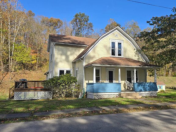 From the front entry, this home feels so cozy. Built to last in 1910, this 3 BR, 1 BA home offers so many amenities. Throughout the house, you will find beautiful original woodwork, hardwood floors, built-in cabinetry, and several details you do not see in modern homes today. The rich wood tones are just beautiful and add a lot of country charm. The kitchen features a butcher's block island, farmhouse sink, antique plate shelf, walk-in pantry, a built-in hutch, and a breakfast area with a window seat and access to the deck. The first floor also offers a formal dining room with built-in antique cabinets, an antique bath with a claw-foot tub, a living room with a beautiful, cozy fireplace, and a parlor/setting room. Upstairs offers three lovely bedrooms, a craft room that could easily be turned into another bath. Outdoors offers a front covered porch, a back covered small porch, a side deck, a playhouse, a cellar house with an overtop workshop, a garden area, a fenced-in pet/play area, an older shed building, and two large lots that both adjoin the Rail to Trails, a horseback and bicycling trail, in WV