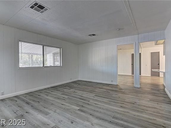 Welcome to this spacious 5 bedroom, 2 bath, manufactured home, fully converted to real property and ready to move in. It features modern laminate flooring, fresh paint, and a bright open layout. The kitchen has a gas stove, white refrigerator, and double stainless steel ovens, perfect for family meals and entertaining. Enjoy the large living room, separate family room, and a covered porch for relaxing outdoors. Located on a corner lot, this home offers comfort, space, and convenience in a great Las Vegas neighborhood.