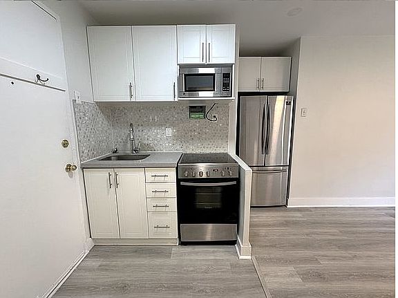This newly renovated unit on a quaint and quiet street with suburban feel right in the city. Just steps to little beach and boat launch! - Appliances: Fridge, Stove and Microwave - Upgraded kitchen with stainless steel appliances - Upgraded Finishes throughout - Open concept layout with large window - Laminate floors throughout - 3 Minute walk to No Frills, transit, shopping and restaurants. - Direct access to the Gardiner - Has a Walk Score of 89 out of 100! *Please reply to ad to schedule a showing. Calls are not monitored as frequently*Community Amenities- Public transit- Shopping nearby- Parks nearby- Beach nearby- Schools nearby- No Smoking allowed. Suite Amenities- Fridge- Stove- Microwave- Laminate Floors. Utilities Included- Heat- Water. Looking to sublet/take over lease until Dec 31st 2025 at which time you can choose to renew the lease. My friend had to move to a different province due to job change. Please contact us for more