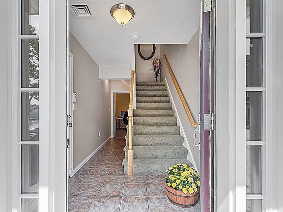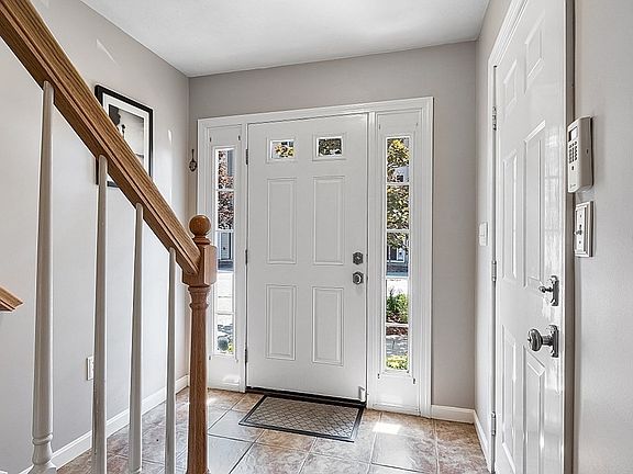 Impeccable END UNIT available at The Residences at Stedman. Boasting outstanding curb appeal with beautiful flowers, this unit has tons of natural light, shiny tile and gleaming hardwood floors! The kitchen is stunning with recessed lighting, light granite, tiled backsplash, stainless appliances (NEW dishwasher and microwave), cherry cabinets, breakfast bar and eat-in area. Enjoy the privacy of a wooded back area on the NEW COMPOSITE DECK (Aug. 2022). Warm and cozy living room and remodeled 1/2 bath with marble floor & laundry complete the second floor. The third floor offers 2 generous sized bedrooms, both with large closets and a GORGEOUS, remodeled, full bath with beautiful tiled shower, bubble tub and upgraded fixtures. Spread out with a bonus office/exercise/storage room on entry level and attached one car garage. New A/C unit (2018) New Hot Water tank (2022), Simplisafe system LOW condo fees, easy commuting access to Rt. 495, Rt. 3, Rt. 4 and Drum Hill. Welcome Home!