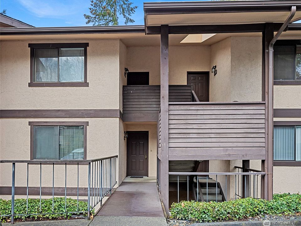 This level-entry 1 bedroom/1 bathroom condo is the gem you've been looking for! No steps to trip you on your way from the vehicle into your home. This quiet end-unit has no neighbors below, helping to maintain peace & quiet. Green views from the large windows help make this unit feel like a protected haven from the hustle & bustle of life. Fresh paint throughout. Cozy fireplace in living rm brings comfort. Kitchen w/plenty of cupboard & counter space. Primary bedroom w/custom-built closet organizers. Large balcony w/space for a patio set or greenery. Two assigned parking spaces. Private storage locker in basement below. Community features cabana/clubhouse & BBQ area. HOA fee includes basic cable. Close to shopping and public transportation.