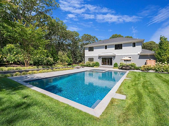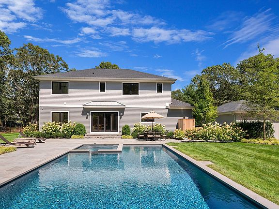 If you've been waiting for new inventory to hit the market, then here is your opportunity to buy a gorgeous 6 bedroom 5 1/2 bath Hamptons new construction set on .86 of an acre. Recently completed this 4,600 square foot home has everything you need including a wonderful finished basement with 2 legal bedrooms The custom kitchen has Quartz countertops, Thermador appliances that include a professional grade stove, refrigerator as well as a wine refrigerator and microwave. The large center island counterspace has lots of workable space for having those fun dinner parties or gatherings. The hardwood floors throughout are natural wide plank white oak and the open floor plan throughout the first floor allows for you to design the space with plenty of options. There is a 1st floor primary suite as well as a secondary junior primary suite on the 2nd floor. All bedrooms on the top 2 floors except for one are ensuite with imported Italian bath tiles and a laundry room on the 2nd floor as well as in the finished basement area which also includes a Sauna system made by Sunlighten. The house is setup for a surround system and already has a security system in place. Other features such as a beautiful gas fireplace that is set in a black Quartz fireplace wall that also includes an amazing smart TV, butler pantry with refrigerator that's separated by a sliding barn style glass door, custom closets, central vac, and free standing primary bath tub. The exterior boasts a stunning heated 20x40 Gunite pool that has a built in hot tub area, firepit, and plenty of entertaining space with 1,200 square feet of bluestone patio that's off the backside of the home. The large backyard is open a gets a ton of sunlight all day long because the front of the home faces slightly due Northeast so enjoying those mid to late summer sunny days will feel they will never end. The property also offers a free standing one car garage equipped with electric charging station, irrigation and an outdoor shower that will keep you in there for hours after the beach or a dip in the pool. Inventory is limited especially in this category so schedule your private showing today to see this stylish Hamptons new construction.