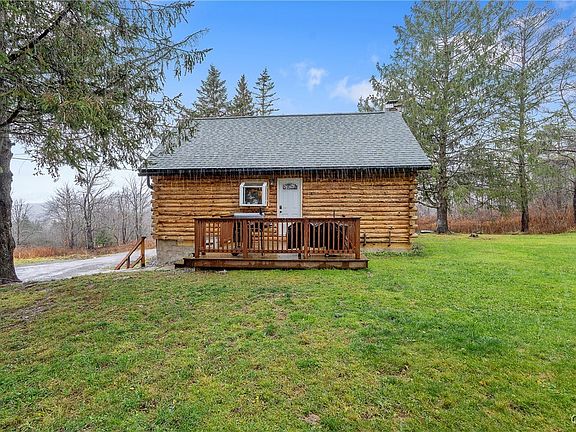 Discover quiet country living in this 900 sq. ft. one-bedroom, one-bath log cabin on just over four acres, completely surrounded by state land for unmatched privacy and endless outdoor adventure.