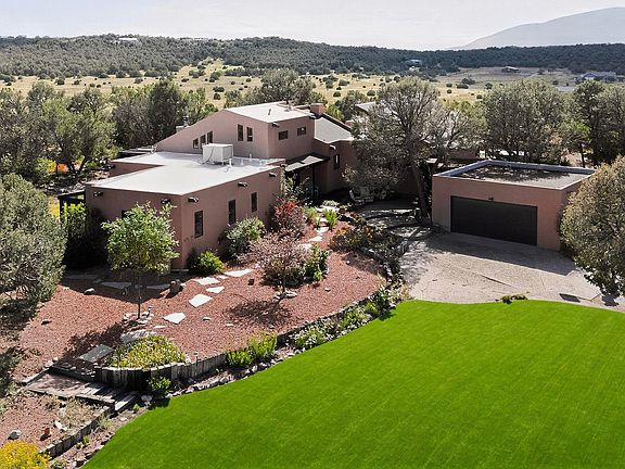 The Mountain Retreat is a secluded oasis cradled in the heart of the mountains, where each sunrise and sunset paints the sky in breathtaking hues. This tranquil haven whispers the gentle song of nature, with graceful deer, curious bobcats, and playful rabbits wandering through lush, scenic landscapes. In winter, it transforms into a snowy paradise, inviting you to cross-country ski right from your doorstep amidst a winter wonderland. Impeccably maintained, this handcrafted Pueblo-style sanctuary exudes warmth and artistry, with soaring tongue-and-groove ceilings, stunning wood beams, and rough-hewn accents. Oak floors, a cozy Kiva fireplace, and modern comforts like a Kinetico water softener make this a dreamlike retreat--an enchanting harmony of elegance, nature, and soulful living.
