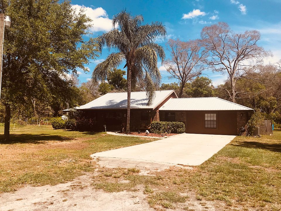 Bring your toys to this beautiful 3/2 ranch style home on 7 + acres which comes with a metal roof and majority tile flooring. The master bedroom has a large walk-in closet and master bath has been recently updated with sunken tub and large walk-in shower with bench. Property has fruit trees and ferns growing under oak hammock for extra income if desired. All acreage is irrigated from 3 shallow wells. There is also a fenced area for cows or goats. Backyard pole barn has lights and electricity. Large bonus room for entertainment or home office. Home warranty Included.All information recorded in the MLS is intended to be accurate but cannot be guaranteed.