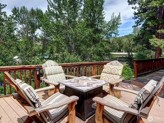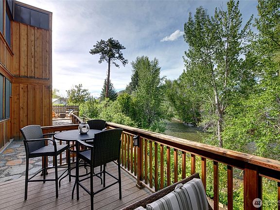 Turnkey, 1 bed 1.5 bath legal nightly rental in the heart of downtown Twisp. This ready-to-rent suite features central heating and cooling, a propane fireplace for cozy ambiance, a large soaking tub, full furnishings, window coverings, and a private screened deck with river views. Step from your ground-floor porch onto a scenic path to no-bank Twisp riverfront. Rent it out for income and stay between bookings for fun. Enjoy all Twisp River Suites (TRS) amenities: riverside hot tub, private beach, riverfront deck, and a guest lounge with bar during lobby hours. Just steps from the Farmers Market, Glover Street shops, TwispWorks, Merc Playhouse, and dining. Fully managed with a strong, established guest base through TRS.