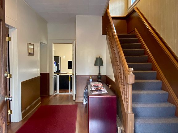 Large vinyl sided colonial with covered front porch. Updated applianced kitchen, dining room, living room, family room, and a first floor office. Tons of natural hardwood flooring. Upper level has 4 bedrooms and walk up attic. 1 1/2 baths. New gas Boiler. Lots of off street parking and a large detached garage. Home is zoned for both commercial and residential so it is perfect for someone with a home business. Home is in nice condition. Full basement and walk up attic.